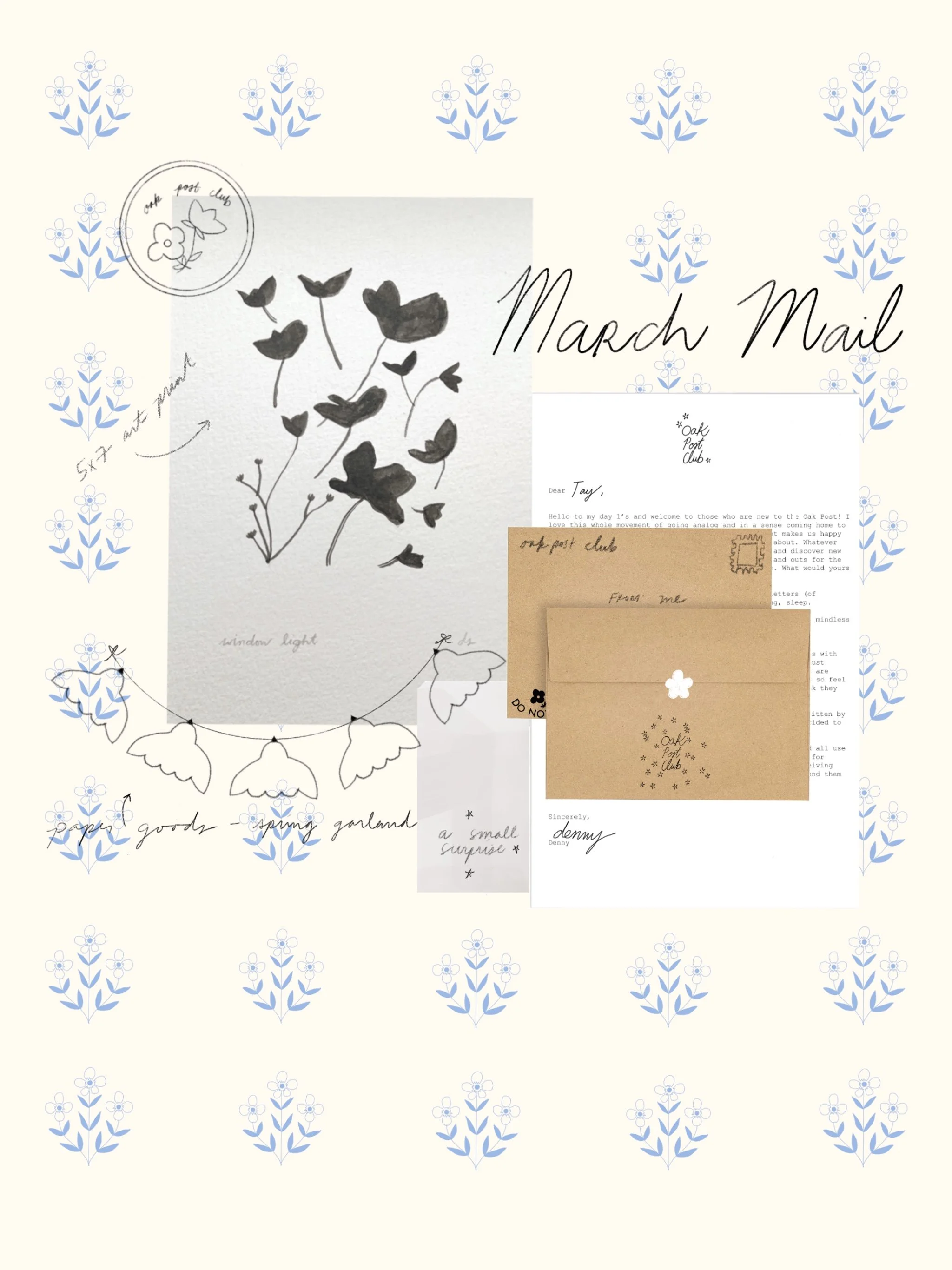The Oak Post Club is a monthly art subscription project in which you will receive an art print, along with a letter, paper goods, and a small surprise to fit each month’s theme. Each month is a different medium ranging from illustrations, to paintings, and even film photography all created by Denny.